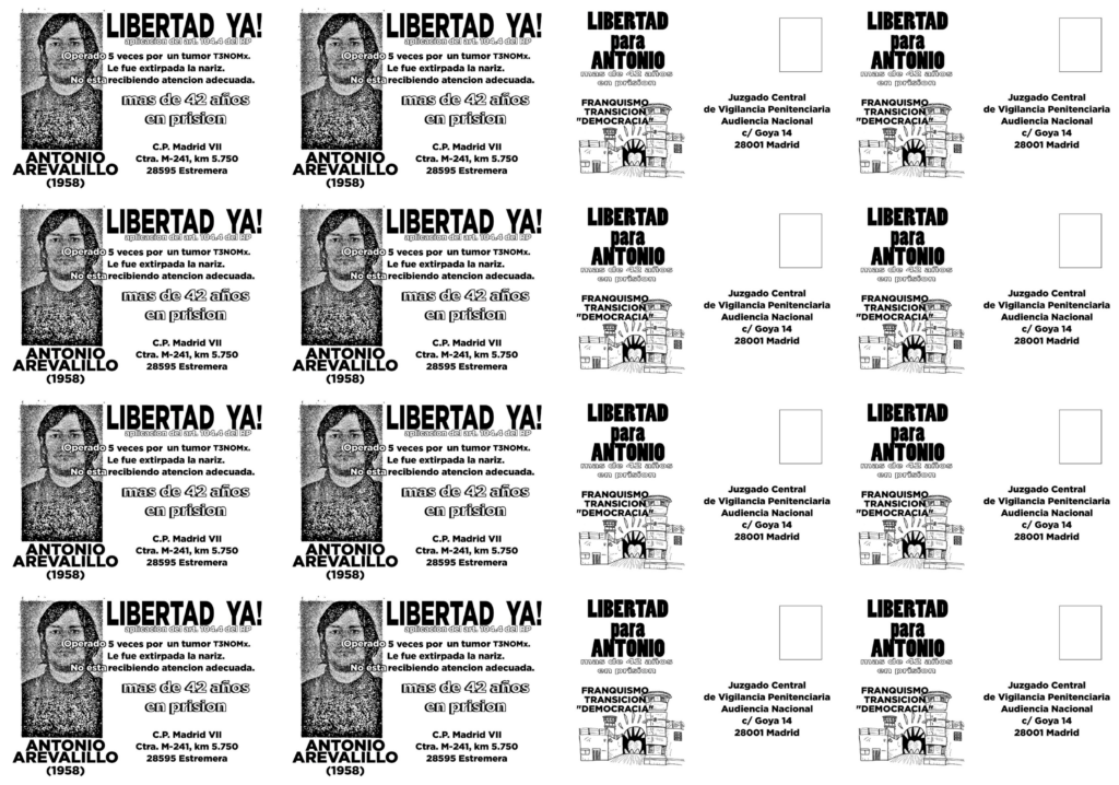 Antonio Arevalillo Sanz nació en Segovia en 1958, tiene, pues 67 años, y desde los 9 años creció en el barrio bilbaíno de Zorroza. En los años 70, como otros muchos jóvenes de origen humilde, se dedicó al atraco de bancos, joyerías y supermercados. Desde 1974, ha sido detenido docenas de veces y se ha fugado en tres o cuatro ocasiones.Participó en la lucha de la COPEL y, en 1983 fue uno de los protagonistas de una revuelta en la prisión de Basauri. En total ha permanecido preso más de 42 años, 15 de ellos en Régimen Especial de castigo (aislamiento). Hace unos años le fue detectado un tumor nasal que ha requerido cinco complejas operaciones quirúrgicas. En el año 2016 Antonio cumplió los tres cuartos de su condena, pudiendo acceder legalmente a la libertad condicional.