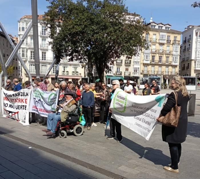 17/04. Vitoria-Gasteiz. Convocados por Salhaketa Araba, con el apoyo de la asociación Katearen Loturak, varias decenas de personas se concentraron en la Plaza de la Virgen Blanca de Gasteiz para denunciar el último fallecimiento de un preso en la cárcel alavesa de Zaballa (el segundo en lo que va de año), así como la desasistencia sanitaria que sufren las personas encarceladas en dicha prisión.